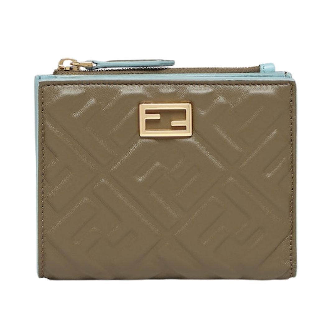 Portafoglio Fendi in nappa verde con motivo FF 9.5 cm