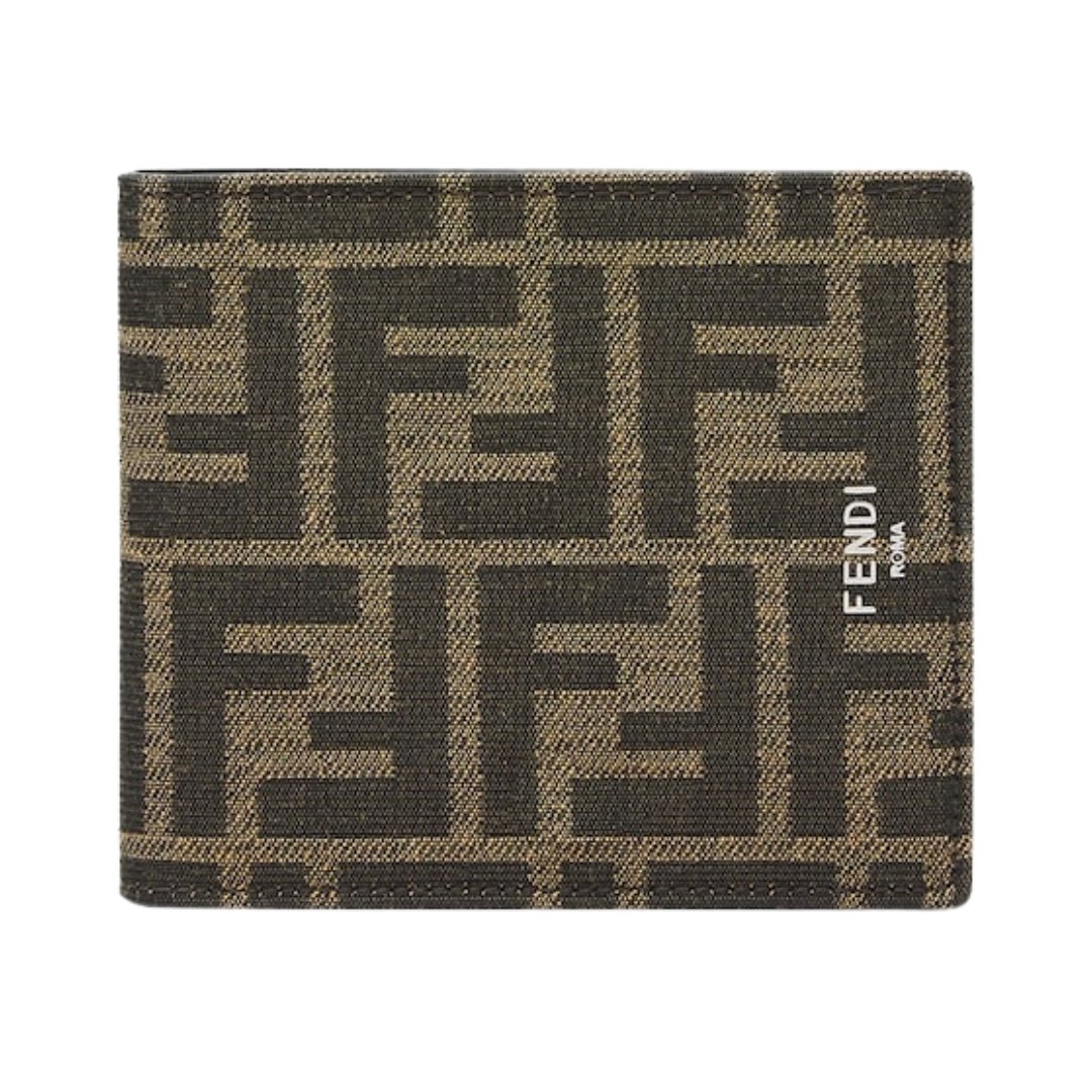Portafoglio Fendi in jacquard marrone con motivo FF 9.5 cm