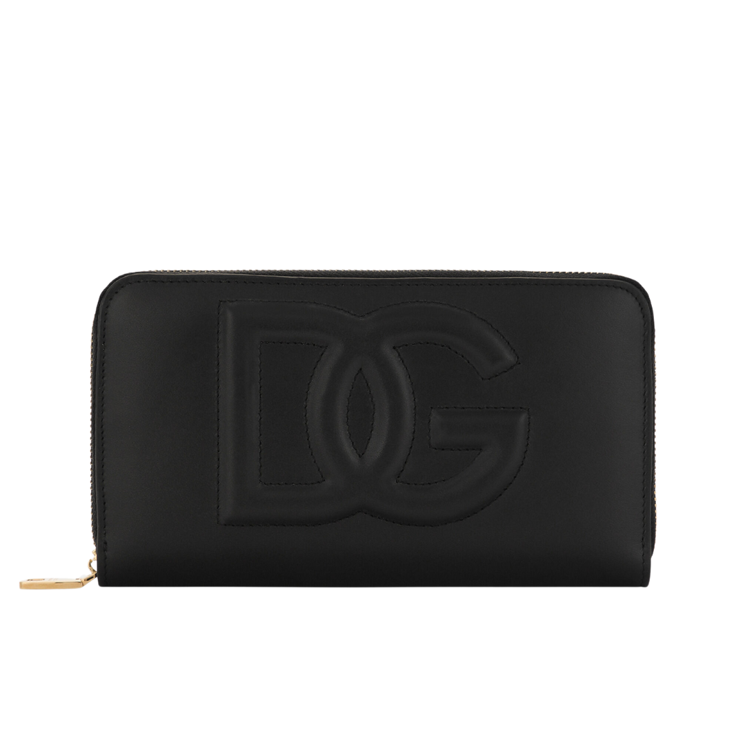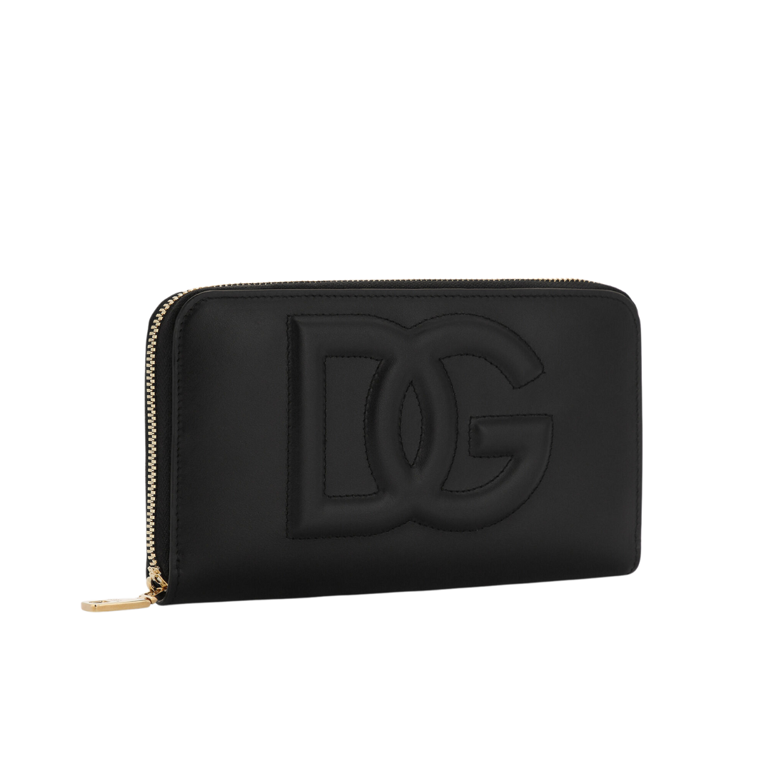 Portafoglio Dolce & Gabbana zip-around in pelle nera con logo DG