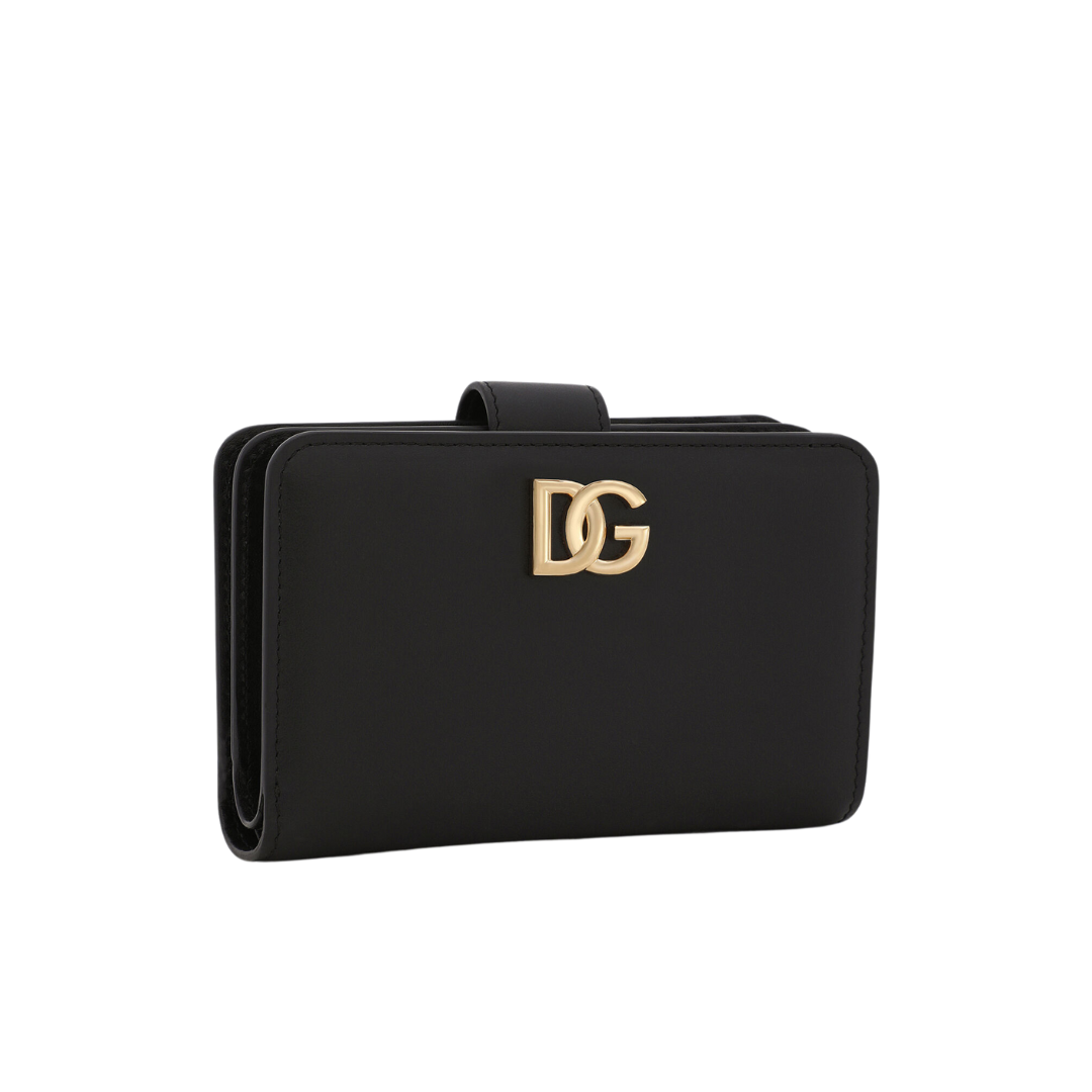 Portafoglio Dolce & Gabbana in pelle nera con logo DG frontale