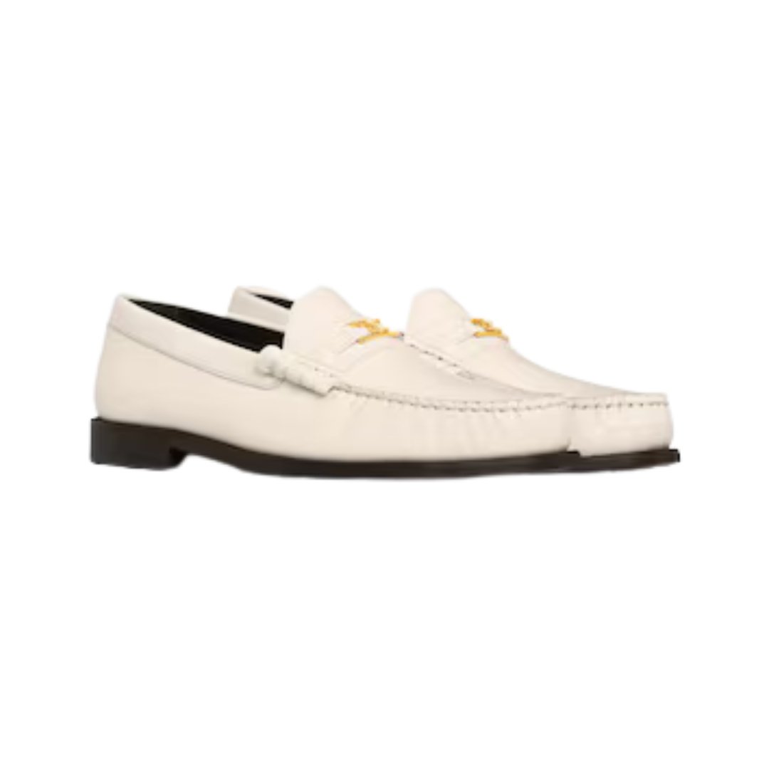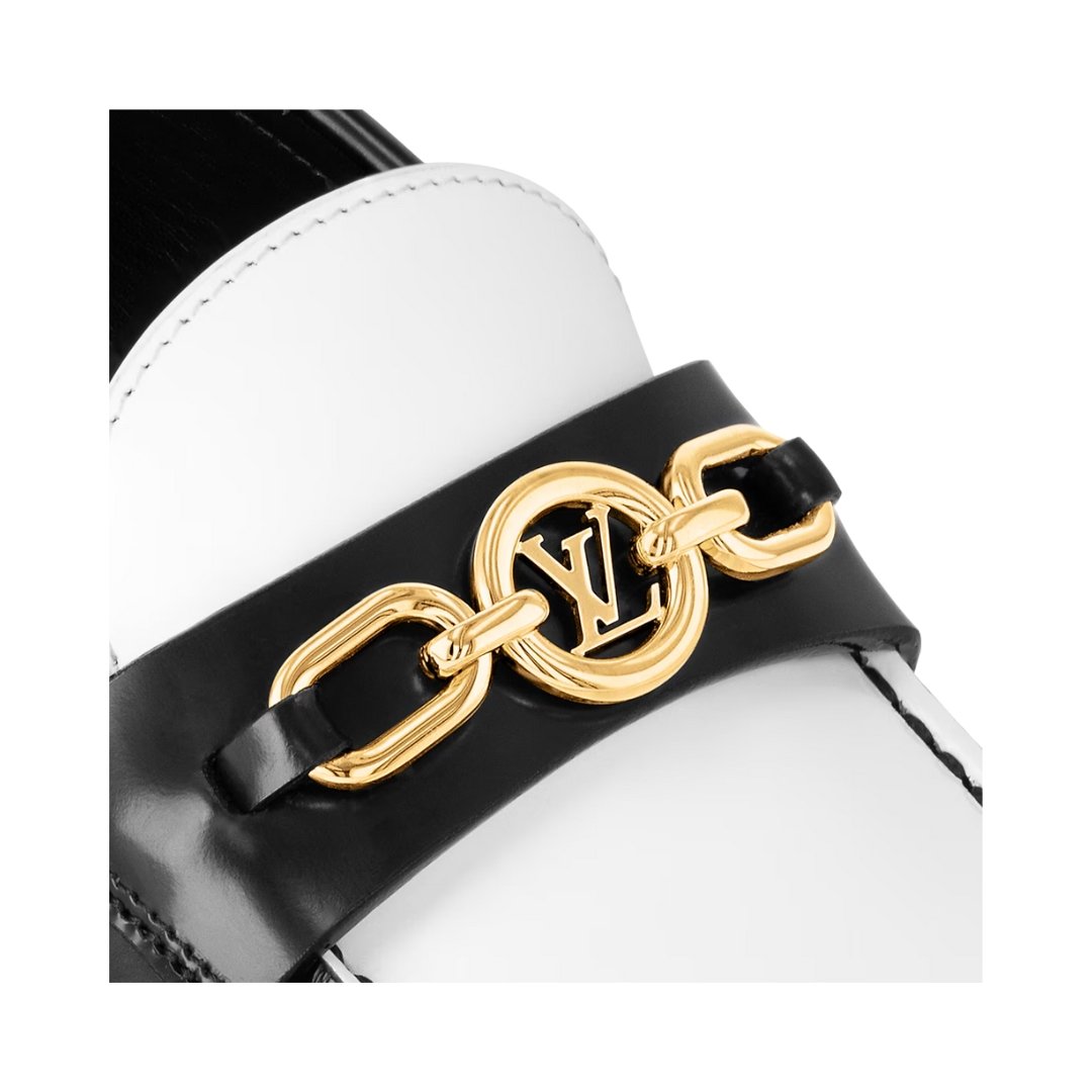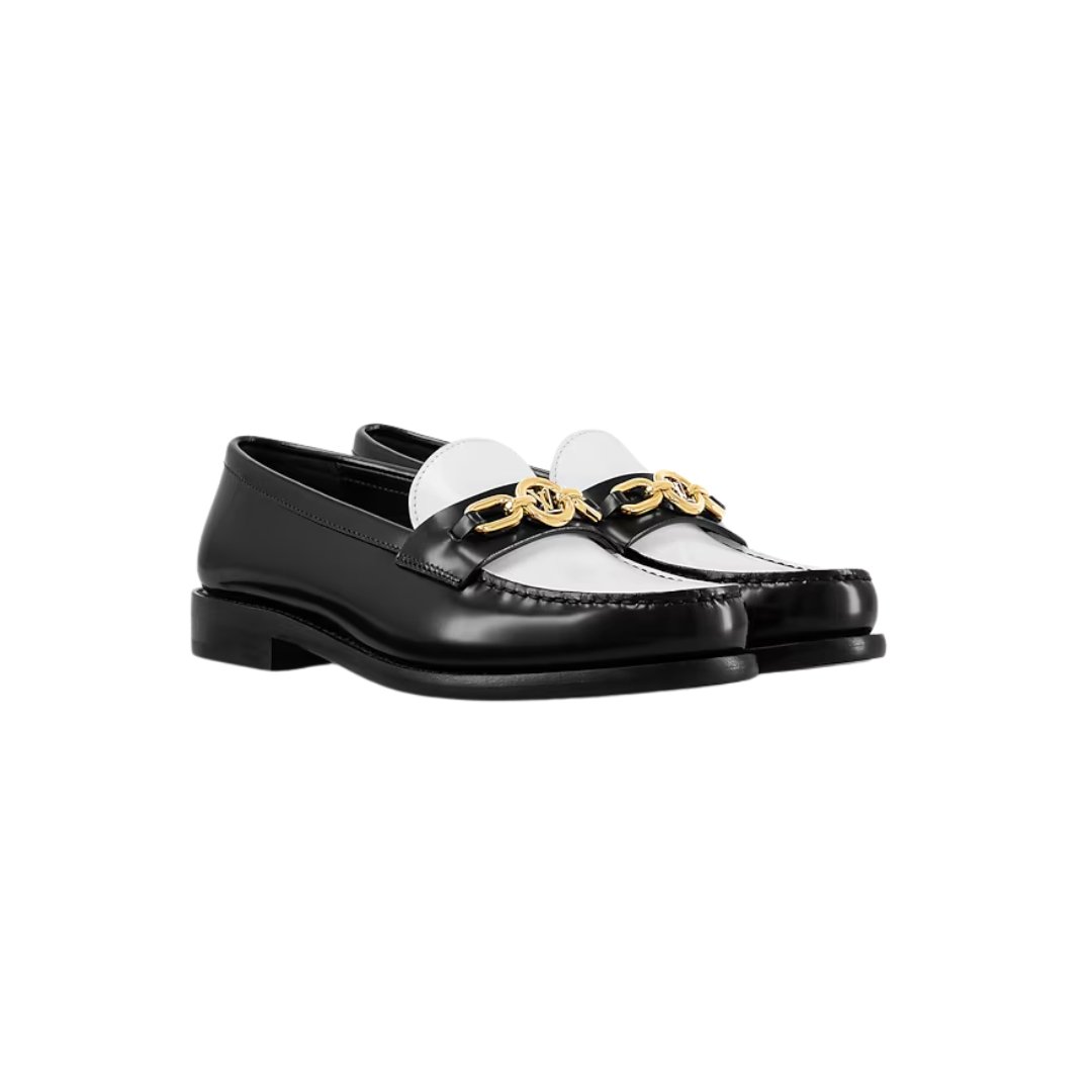 Dettagli:โ— Materiale: Pelle di vitelloโ— Colore: Nero e biancoโ— Chiusura: Slip-onโ— Logo: Catena LV dorataโ— Suola: Pelleโ— Interno: Pelleโ— Parti