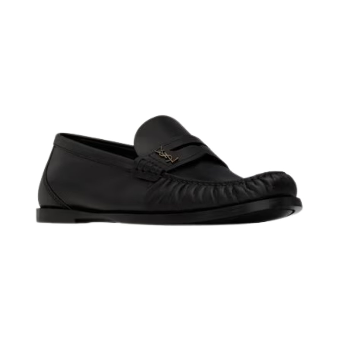 Mocassini Saint Laurent in pelle liscia nera con effetto arricciato