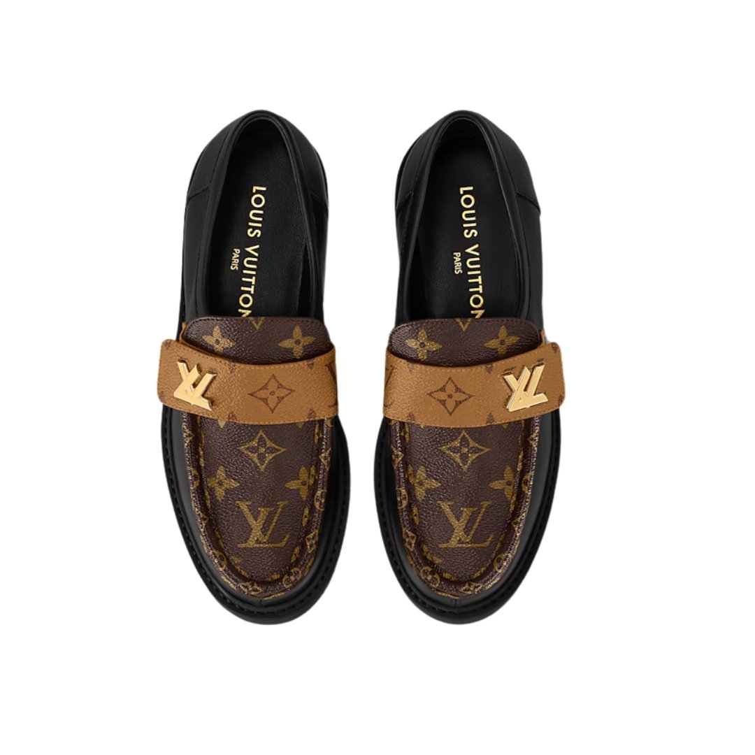 Dettagli:โ— Materiale: Pelle di vitello e tela Monogramโ— Colore: Nero e marroneโ— Chiusura: Slip-onโ— Logo: Fibbia LV dorataโ— Suola: Pelle