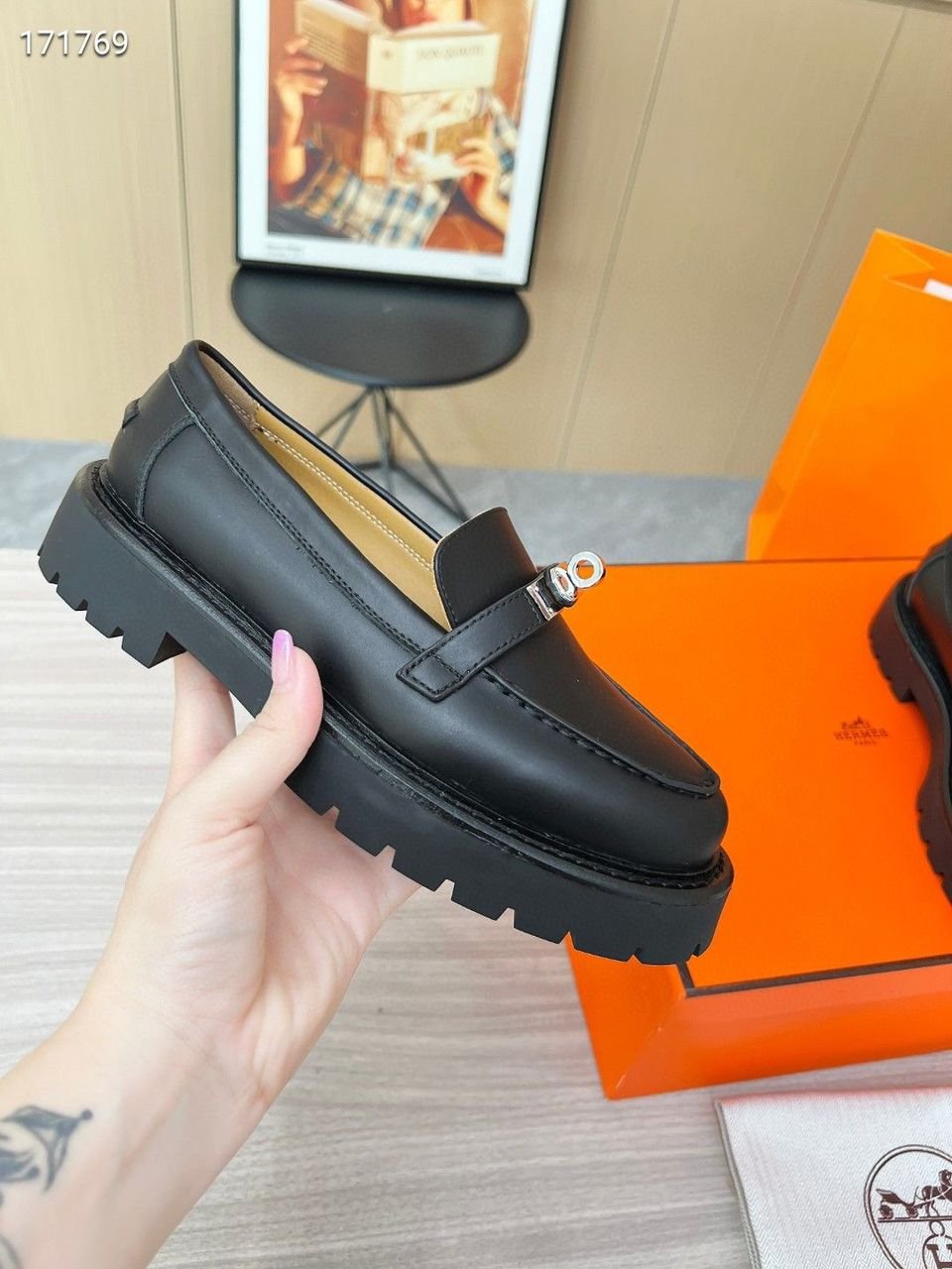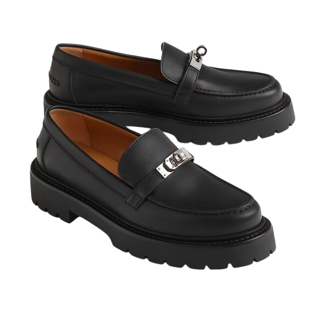 Dettagli:โ— Materiale: Pelle liscia di vitelloโ— Colore: Neroโ— Chiusura: Slip-onโ— Logo: H in metallo argentatoโ— Suola: Cuoioโ— Interno: Pelle neraโ—