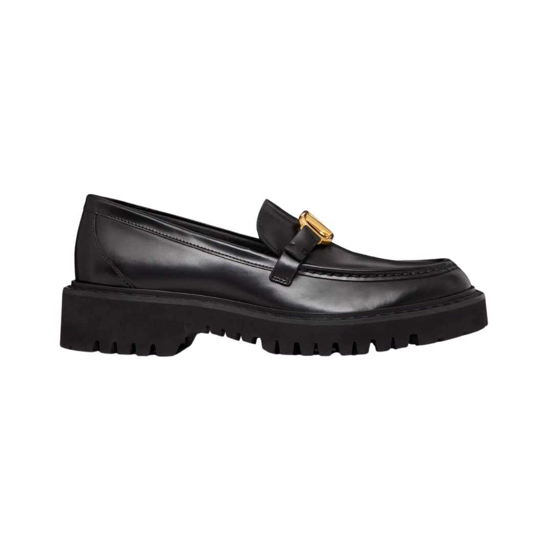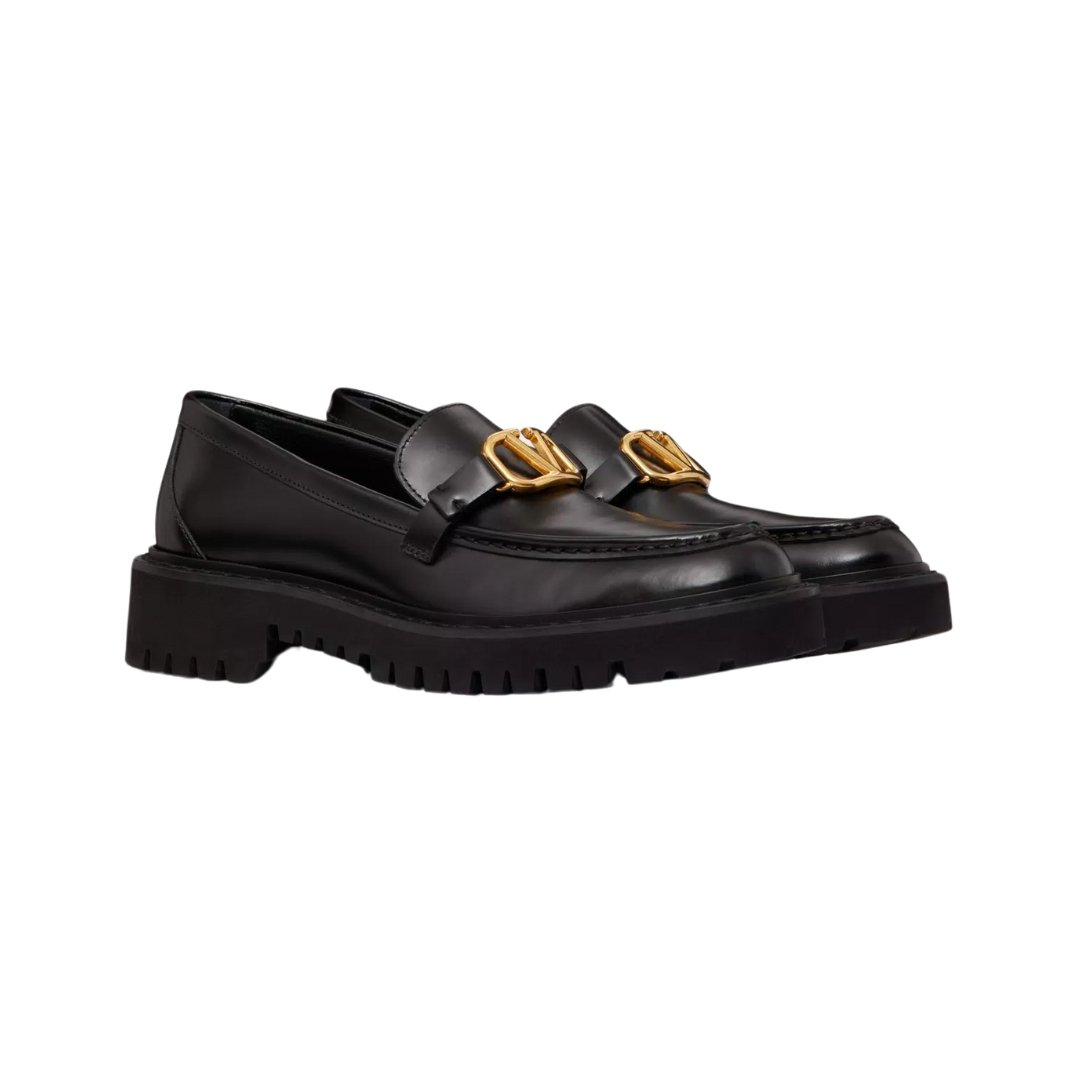 Dettagli:โ— Materiale: Pelle lisciaโ— Colore: Neroโ— Chiusura: Modello slip-onโ— Logo: VLogo metallicoโ— Suola: Spessa in gommaโ— Interno: Fodera in pelleโ—