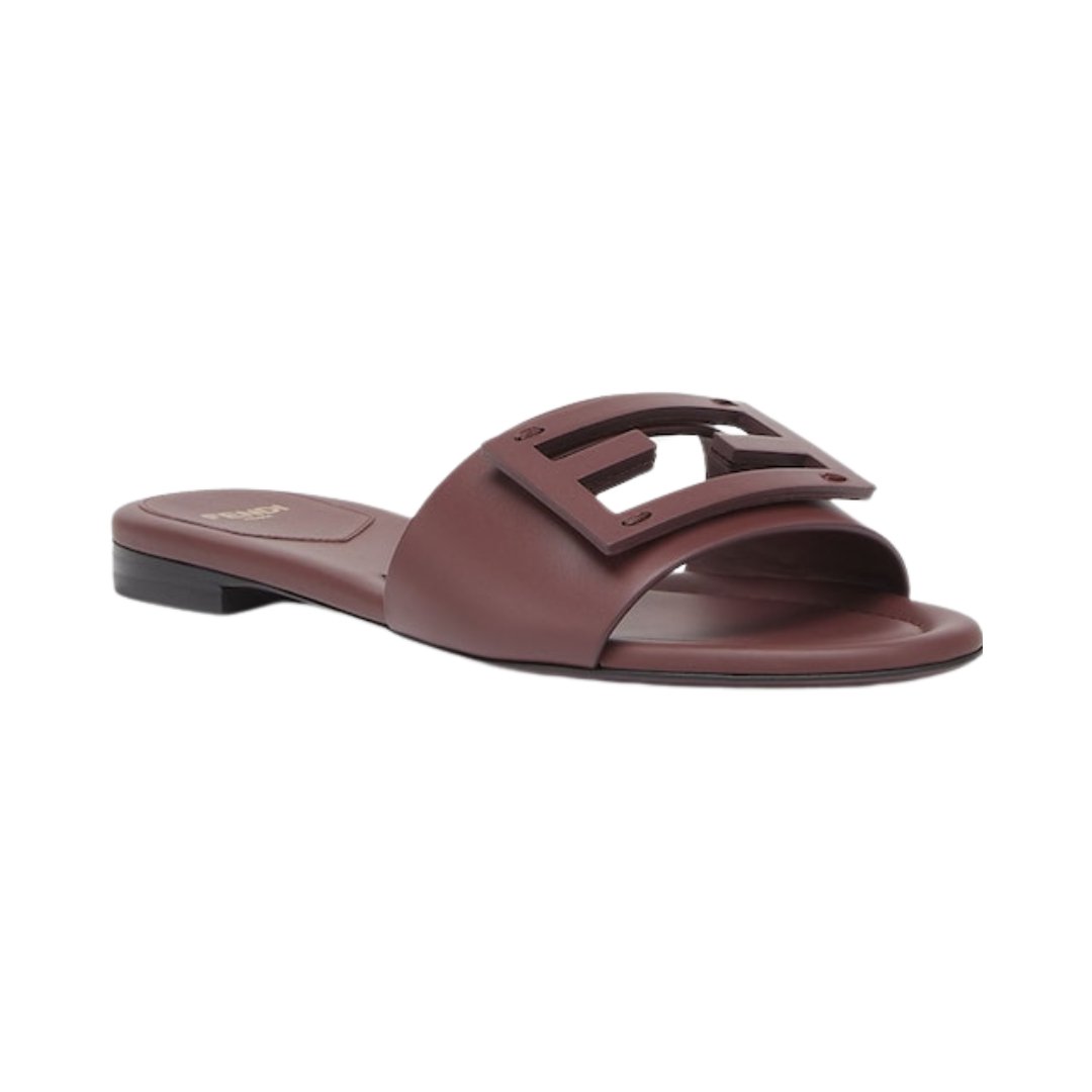 Sandali flat Fendi in pelle marrone cuoio con logo FF