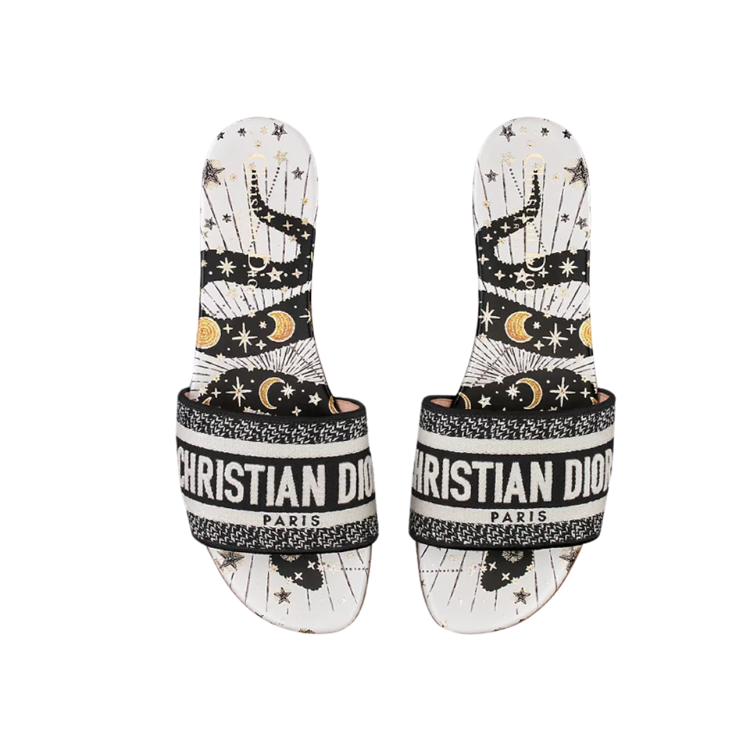 Dettagli:โ— Materiale: Tessuto ricamatoโ— Colore: Bianco con ricamo multicoloreโ— Chiusura: Da infilareโ— Logo: Firma “Christian Dior” ricamata sulla fasciaโ— Suola: