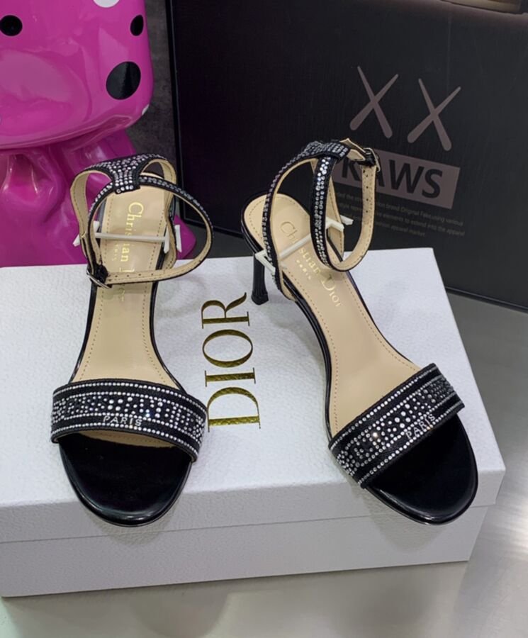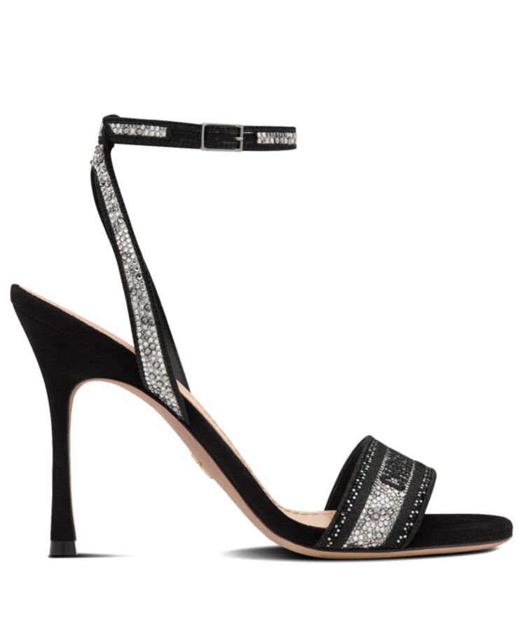 Dettagli:โ— Materiale: Tessuto ricamato con strassโ— Colore: Nero con dettagli argentoโ— Chiusura: Cinturino alla caviglia con fibbiaโ— Logo: โ€œCHRISTIAN DIORโ€