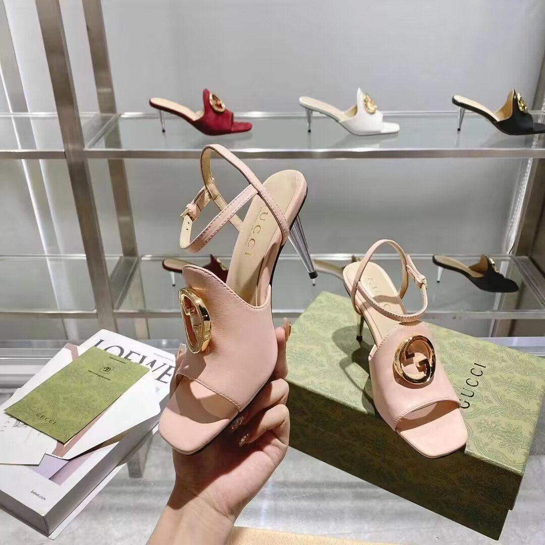 Dettagli:โ— Materiale: Pelle liscia di vitelloโ— Colore: Rosa cipriaโ— Chiusura: Cinturino alla caviglia con fibbia regolabileโ— Logo: Doppia G sul