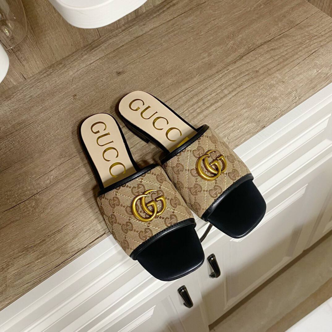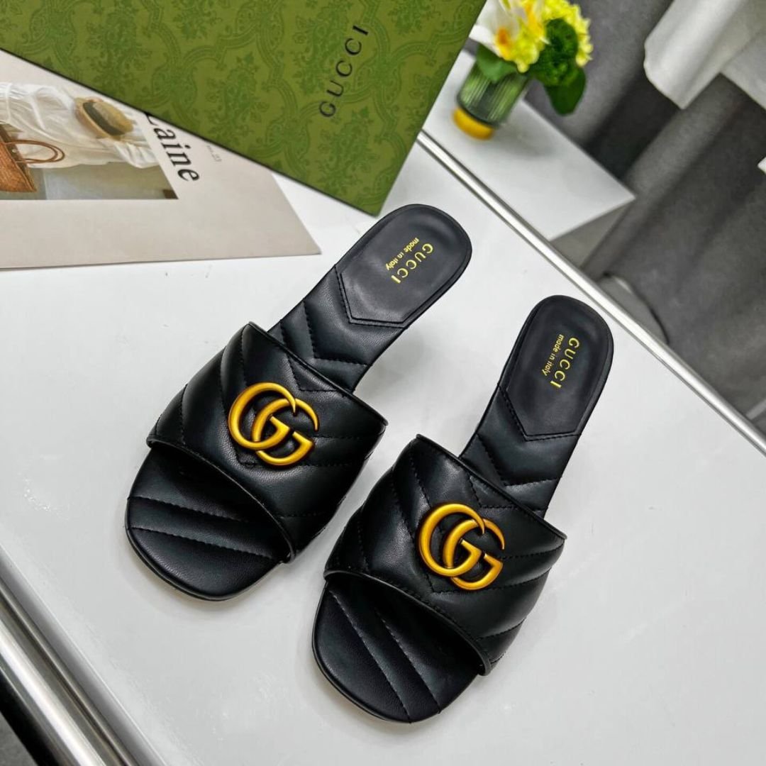 Dettagli:โ— Materiale: Pelle lisciaโ— Colore: Neroโ— Chiusura: Slip-onโ— Logo: Doppia G dorata sulla fascia frontaleโ— Suola: In cuoioโ— Interno: Fodera