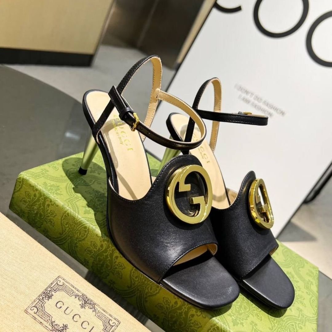 Dettagli:โ— Materiale: Pelle lisciaโ— Colore: Neroโ— Chiusura: Cinturino alla caviglia con fibbiaโ— Logo: Doppia G dorata sulla parte frontaleโ— Suola: