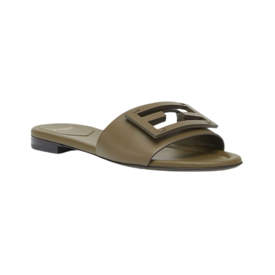 Sandali flat Fendi in pelle verde oliva con logo FF