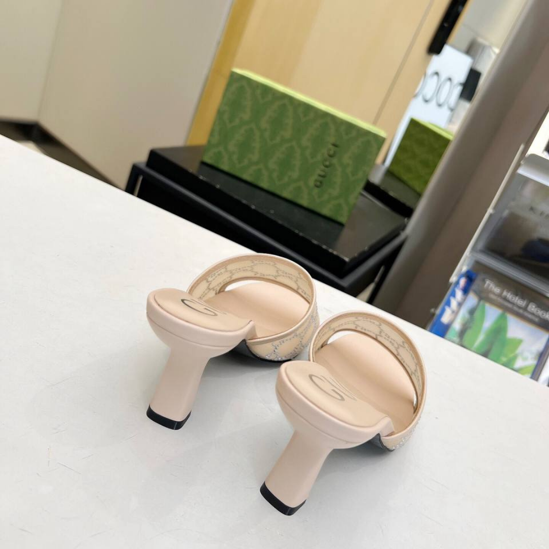 Dettagli:โ— Materiale: raso e cristalliโ— Colore: nudeโ— Chiusura: slip-onโ— Logo: inciso sulla solettaโ— Suola: in cuoioโ— Tacco: 5 cm
