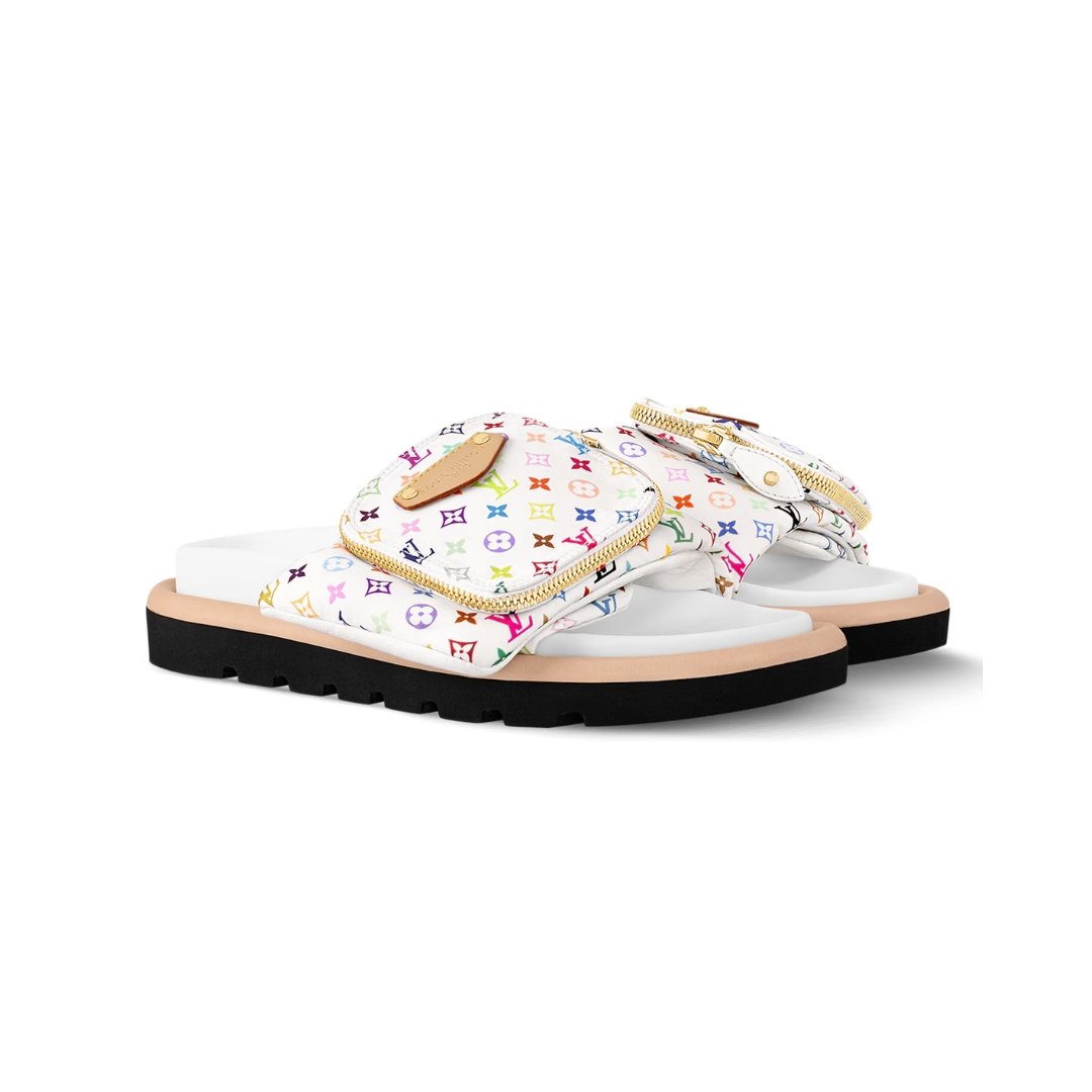 Sandali Louis Vuitton TM Pool Pillow Flat Comfort-Pantolette bianca multicolor
