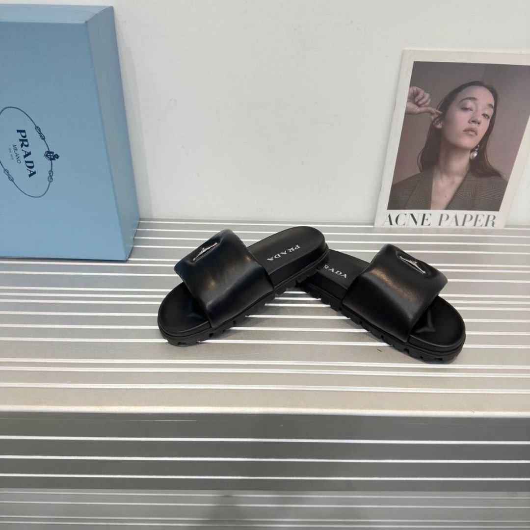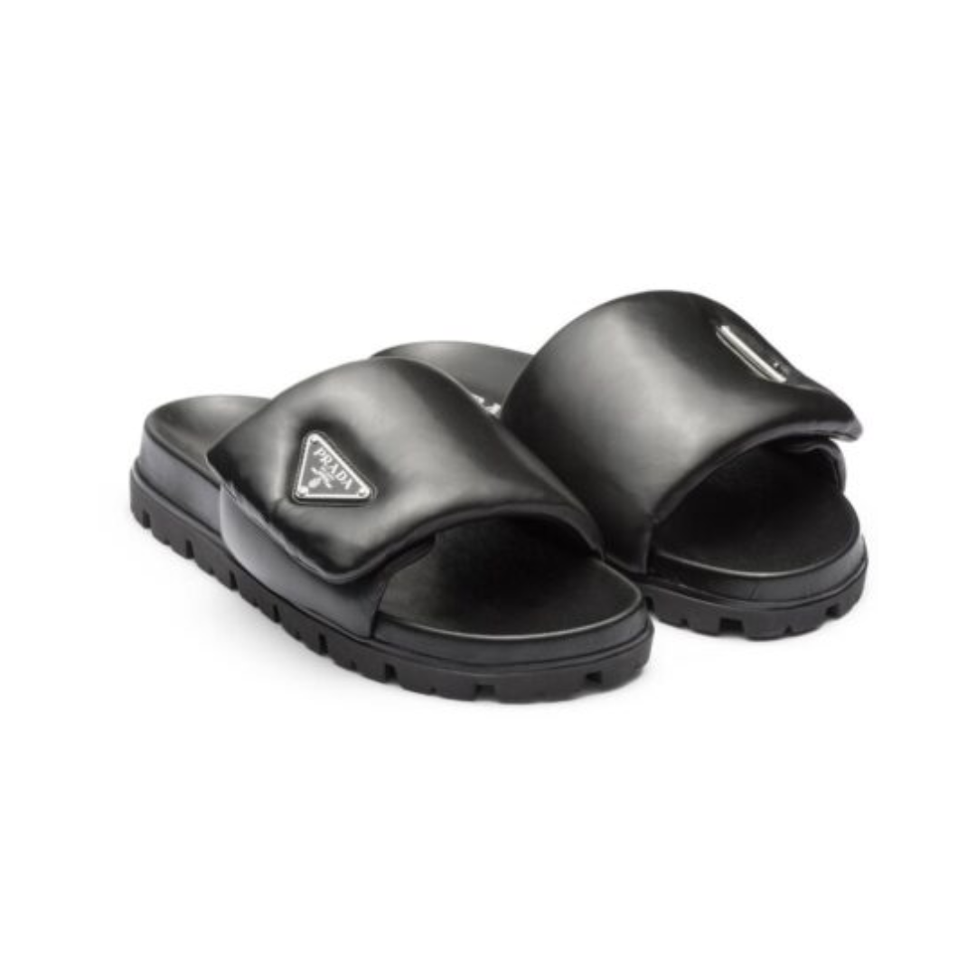 Dettagli:โ— Materiale: Pelle trapuntataโ— Colore: Neroโ— Chiusura: Slip-onโ— Logo: Triangolo Prada sulla fascia superioreโ— Suola: In gomma dentellataโ— Interno: Pelleโ—