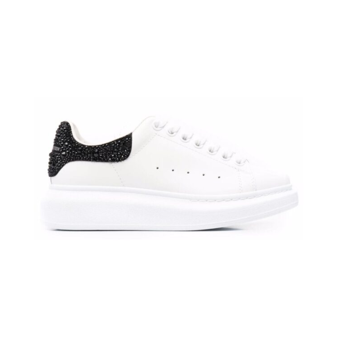 Dettagli:โ— Materiale: Pelle liscia e inserti con cristalliโ— Colore: Bianco con tallone nero glitteratoโ— Chiusura: Lacci bianchiโ— Logo: Logo Alexander