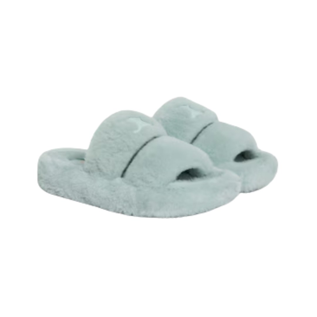 Dettagli:โ— Materiale: Montoneโ— Colore: Verde acquaโ— Chiusura: Slip-onโ— Logo: Ricamato sul davantiโ— Suola: Gomma antiscivoloโ— Interno: Montoneโ— Parti metalliche: Nessuna