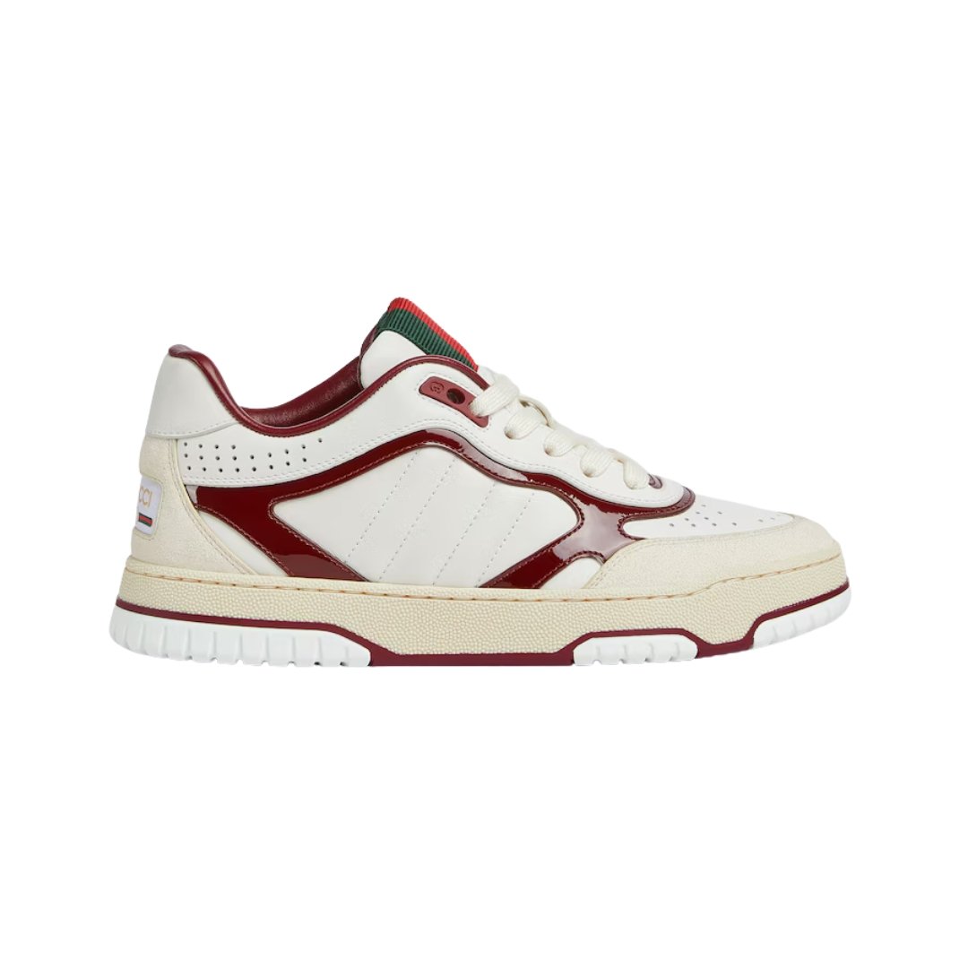 Sneakers Gucci Re-Web in pelle bianca e dettagli bordeaux