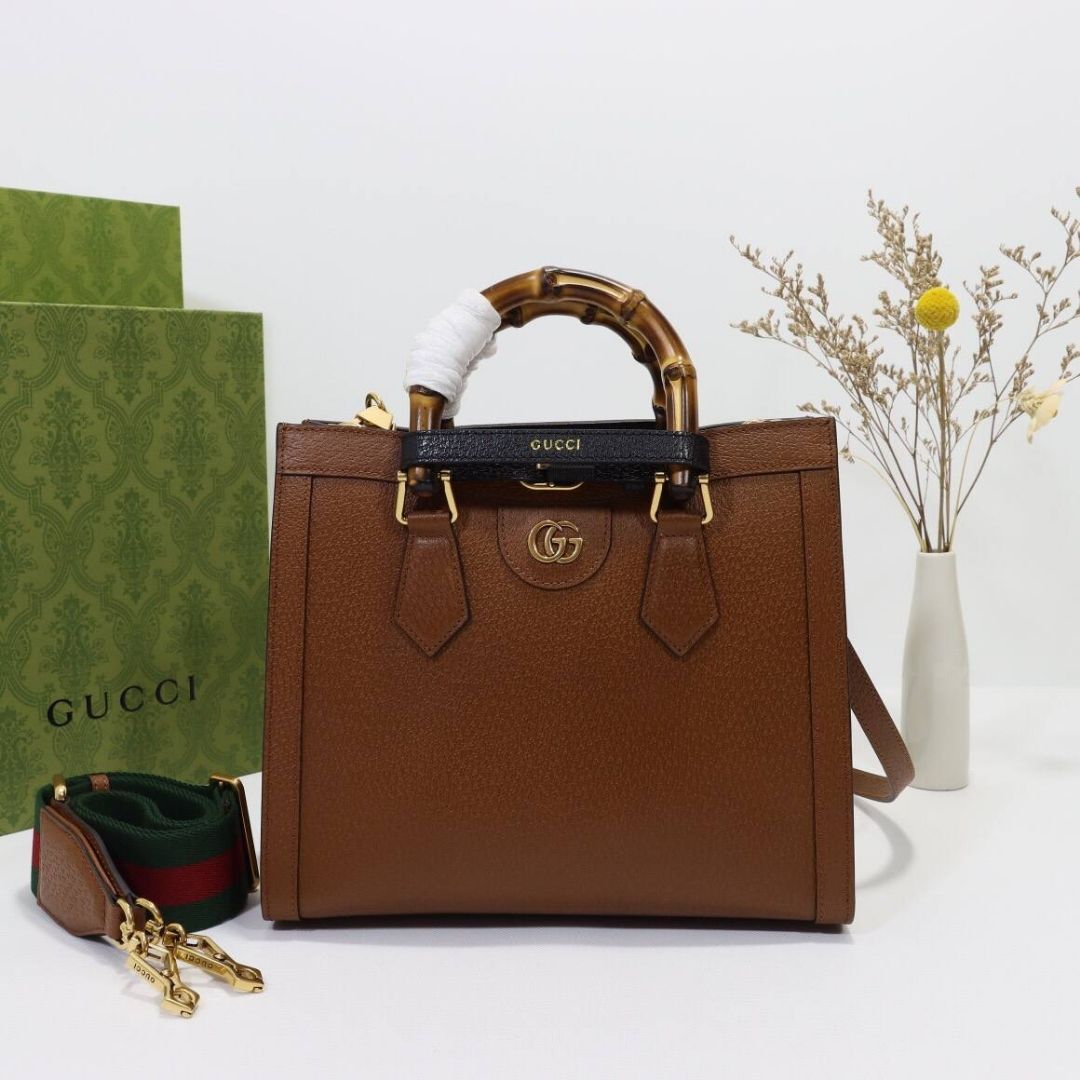 Borsa Gucci Diana in pelle liscia marrone 27 cm