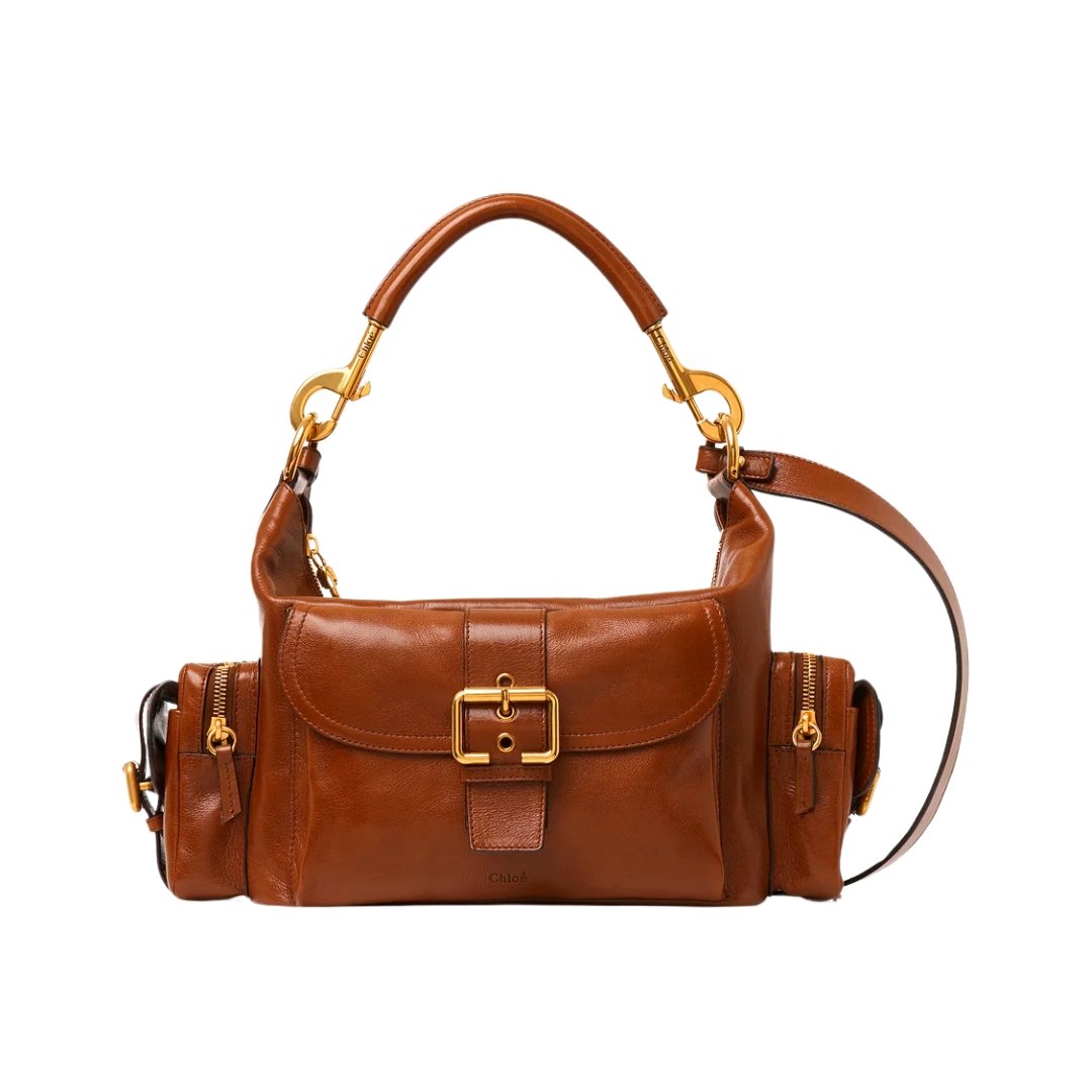 Borsa Chloรฉ Camera in pelle lucida cognac 34 cm