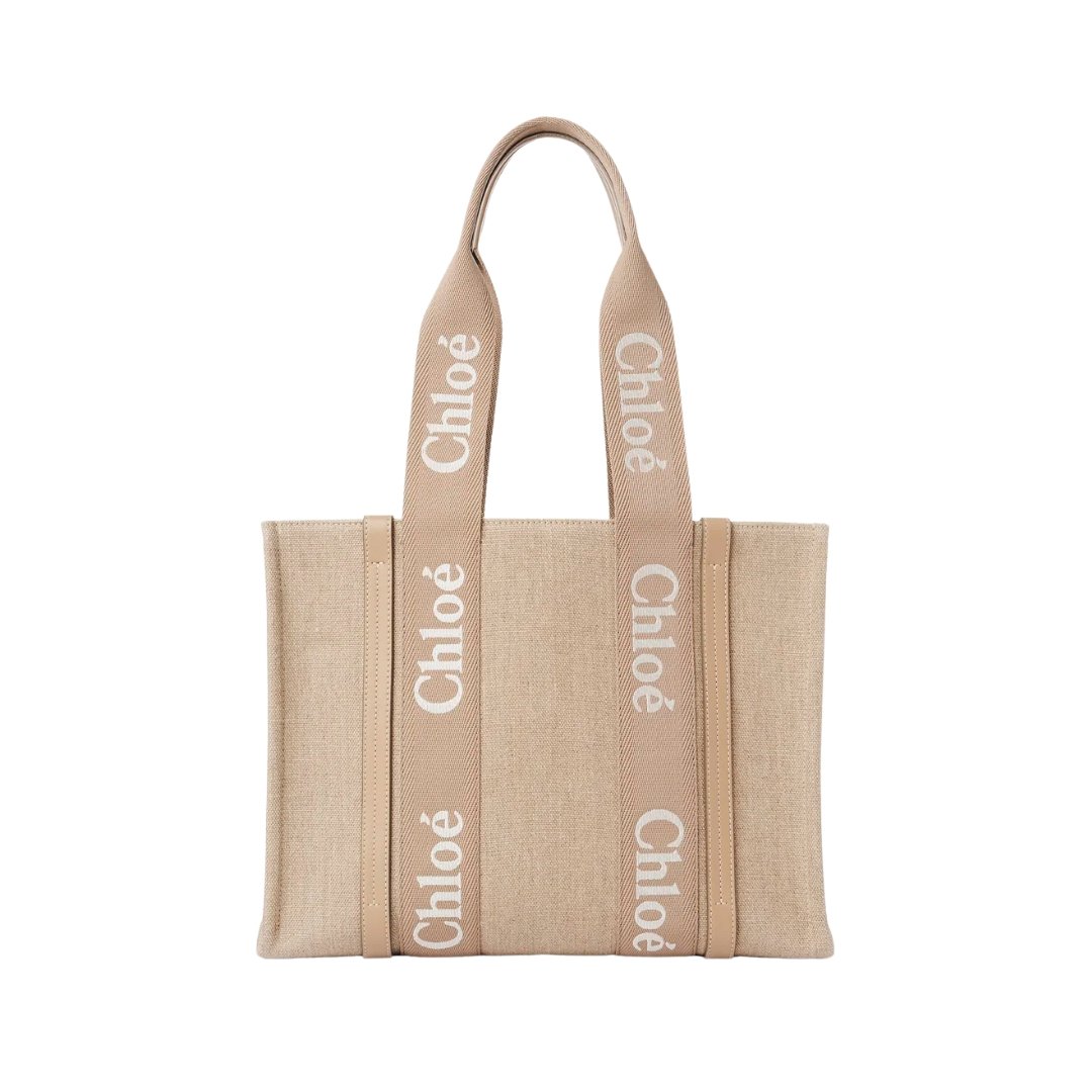 Borsa Chloรฉ Woody in lino naturale 37 cm