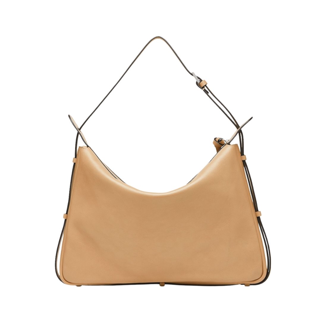 Dimensioni:โ— Larghezza: 27 cmโ— Altezza: 25 cmโ— Profonditร : 13 cm Dettagli:โ— Materiale: Pelle lisciaโ— Colore: Taupeโ— Chiusura: Con coulisseโ— Logo: