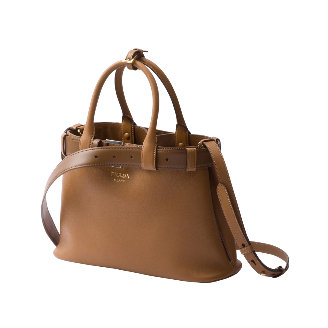 Borsa Prada Buckle piccola in pelle caramello 23 cm