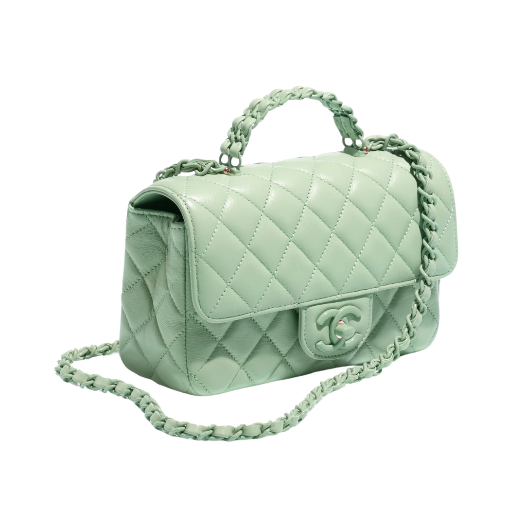 Borsa Chloรฉ Mini Flap verde con manico superiore