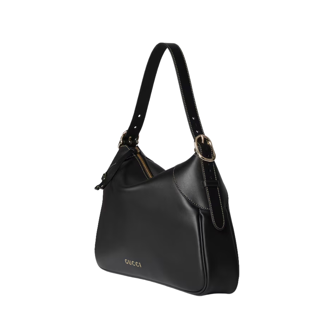 Borsa Gucci GG Emblem in pelle nera liscia 37 cm