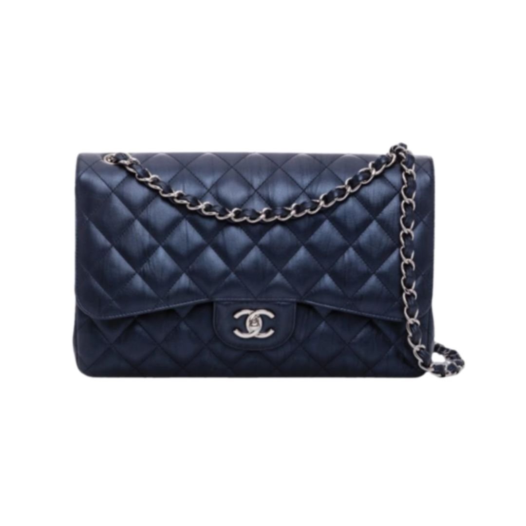 Borsa Chanel Wallet on Chain Classic in pelle blu navy con finiture argentate
