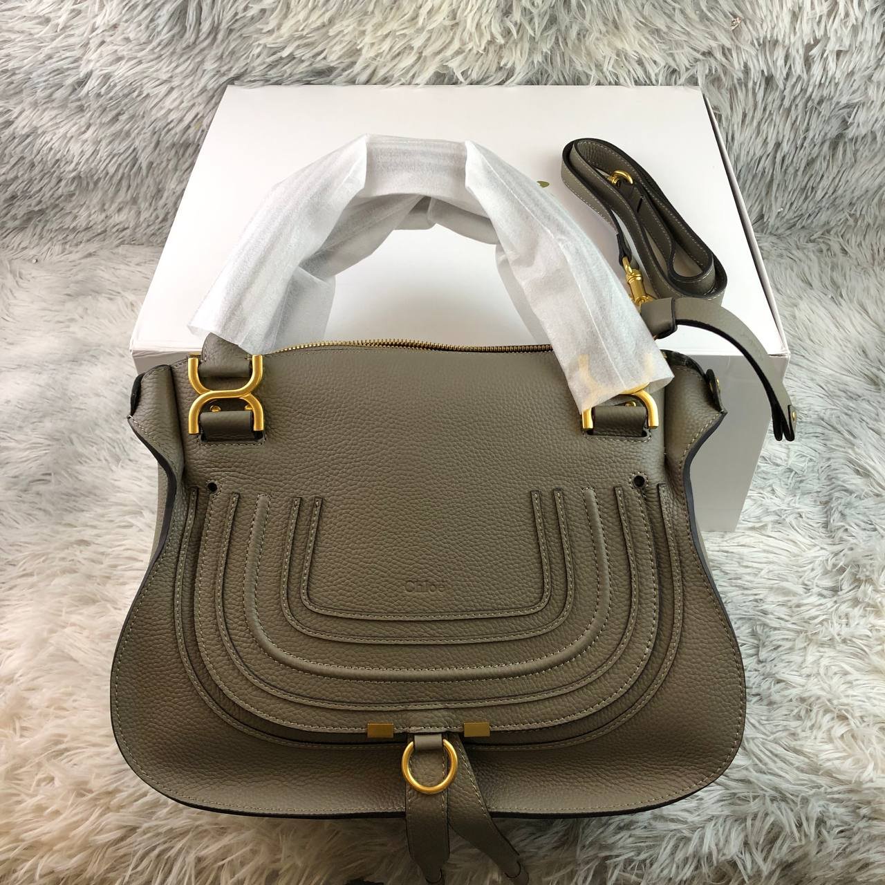 Borsa Chloรฉ Marcie media in pelle grigio-bruna 36 cm