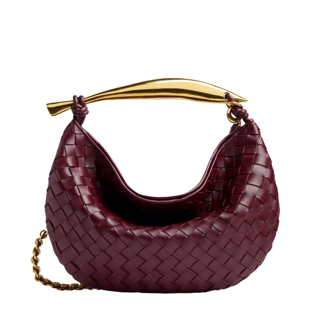 Dimensioni:โ— Larghezza: 16,5 cmโ— Altezza: 12 cmโ— Profonditร : 6 cm Dettagli:โ— Materiale: Pelle imbottita Intrecciatoโ— Colore: Vinacciaโ— Chiusura: Chiusura a
