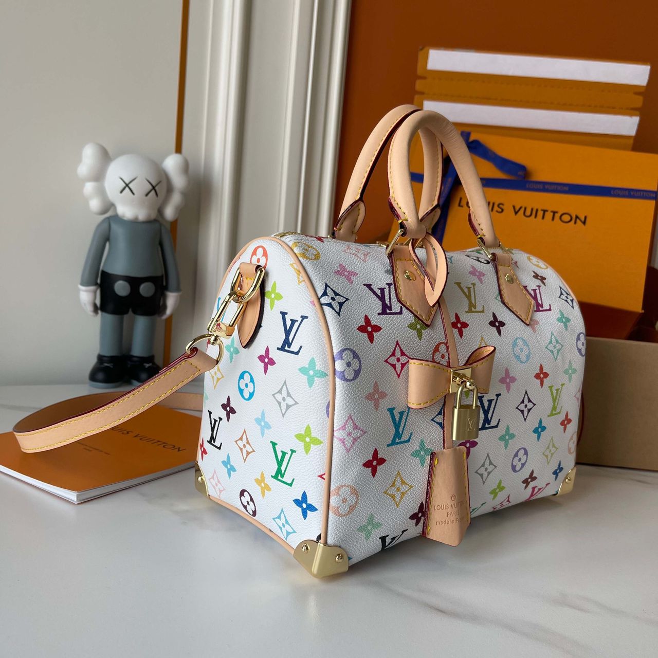 Borsa Louis Vuitton Speedy Bandoulière in tela Monogram multicolore bianca 25 cm