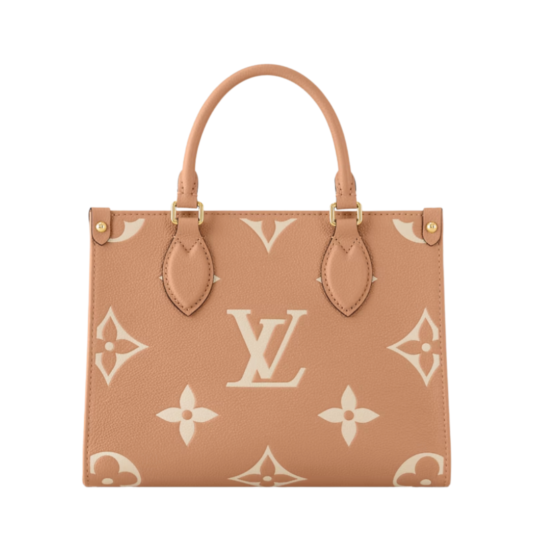 Borsa Louis Vuitton Onthego PM in pelle Arizona e crema 25 cm