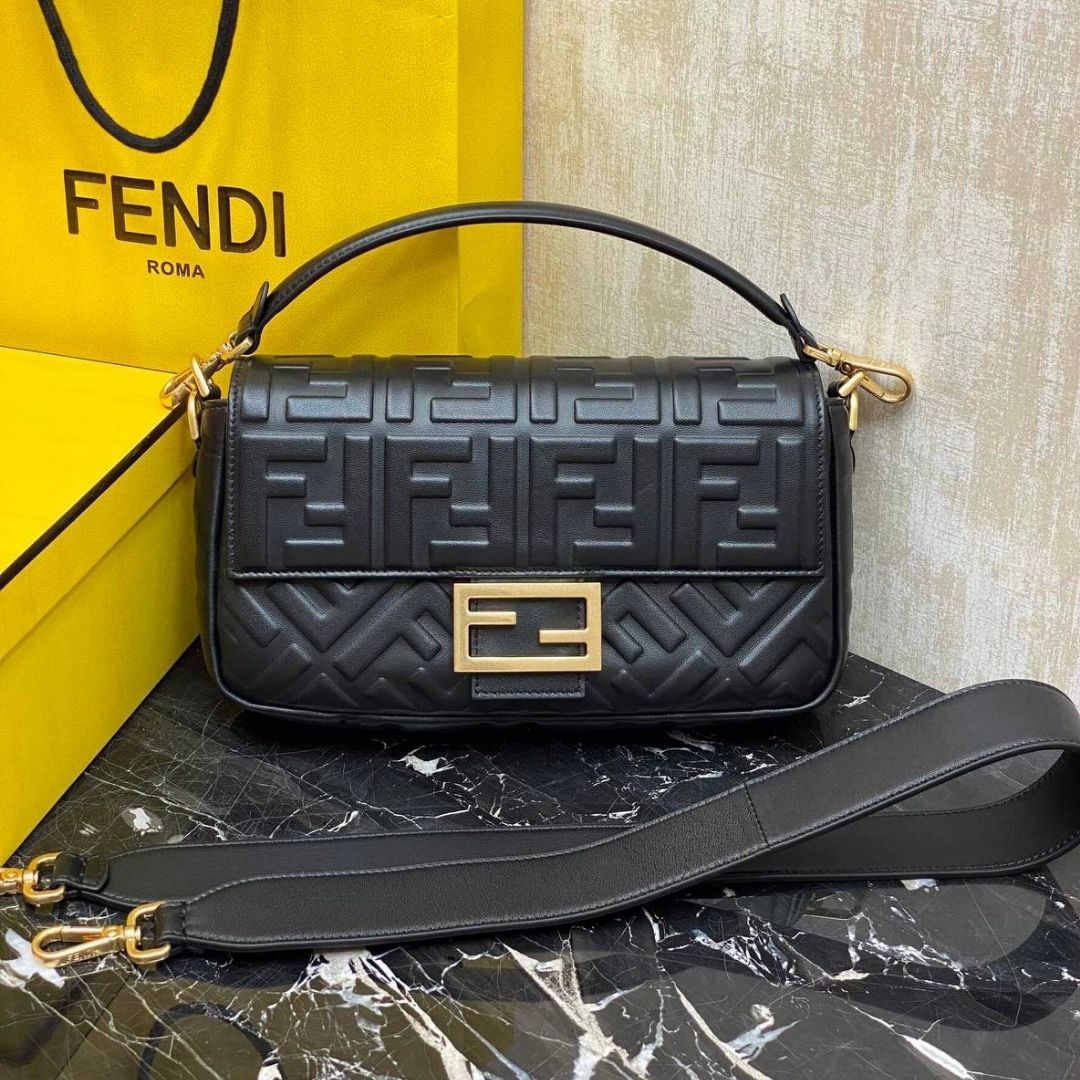Borsa Fendi Baguette in pelle nera 32 cm