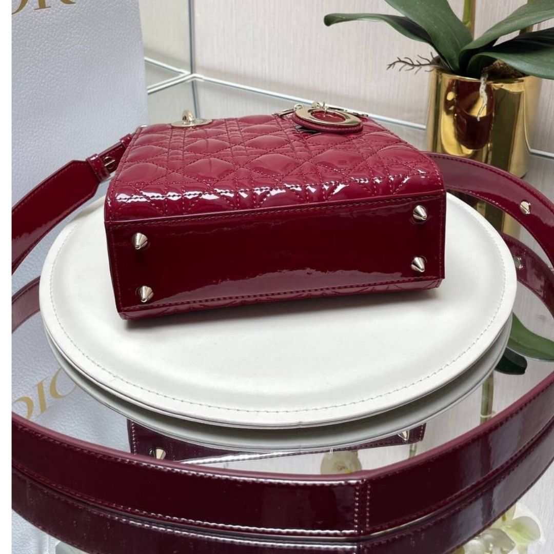 Borsa Lady Dior My ABCDior in pelle verniciata bordeaux 20 cm