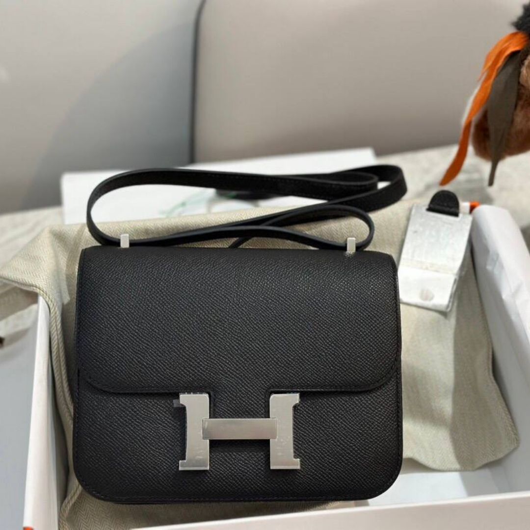 Borsa Hermès Constance 19 in pelle nera con finiture argentate