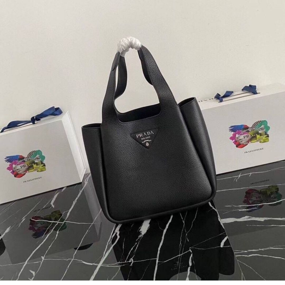Borsa Prada Tote in pelle nera 25 cm