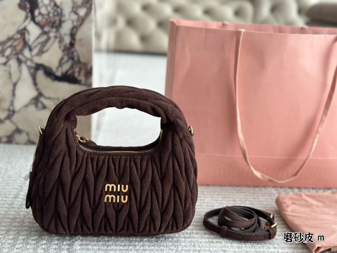 Borsa Miu Miu Wander in nappa matelassé marrone 20 cm