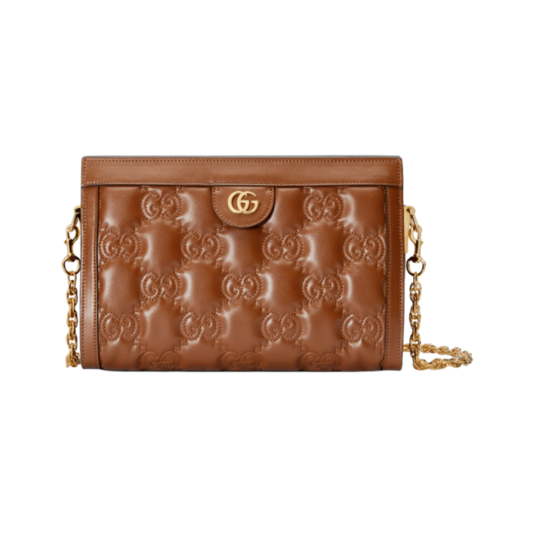 Borsa Gucci GG Matelassé a spalla piccola in pelle marrone 24 cm