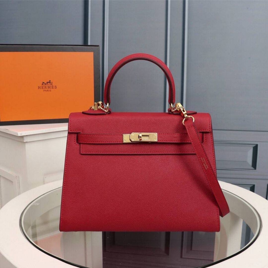 Borsa Hermès Kelly 25 in pelle Togo rossa