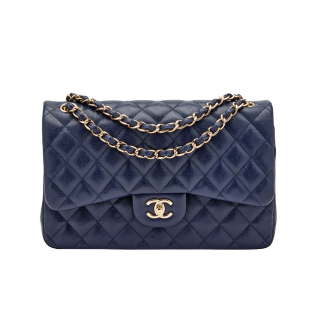 Borsa Chanel 11.12 Classic Flap in pelle blu con finiture dorate 30 cm
