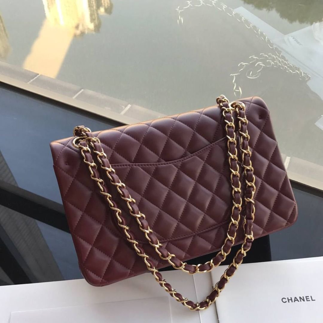 Borsa Chanel 11.12 Classic Flap in pelle bordeaux 30 cm
