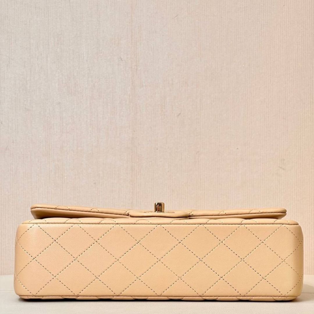 Dimensioni:โ— Larghezza: 26 cmโ— Altezza: 16 cmโ— Profonditร : 9 cm Dettagli:โ— Materiale: Pelle di agnello trapuntataโ— Colore: Cammelloโ— Chiusura: Patta