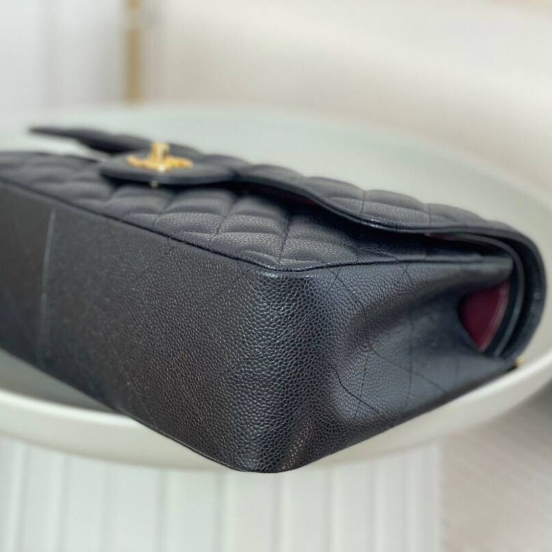 Dimensioni:โ— Larghezza: 25,5 cmโ— Altezza: 15 cmโ— Profonditร : 6,5 cm Dettagli:โ— Materiale: Pelle caviar (grainรฉ)โ— Colore: Bordeauxโ— Chiusura: Patta con