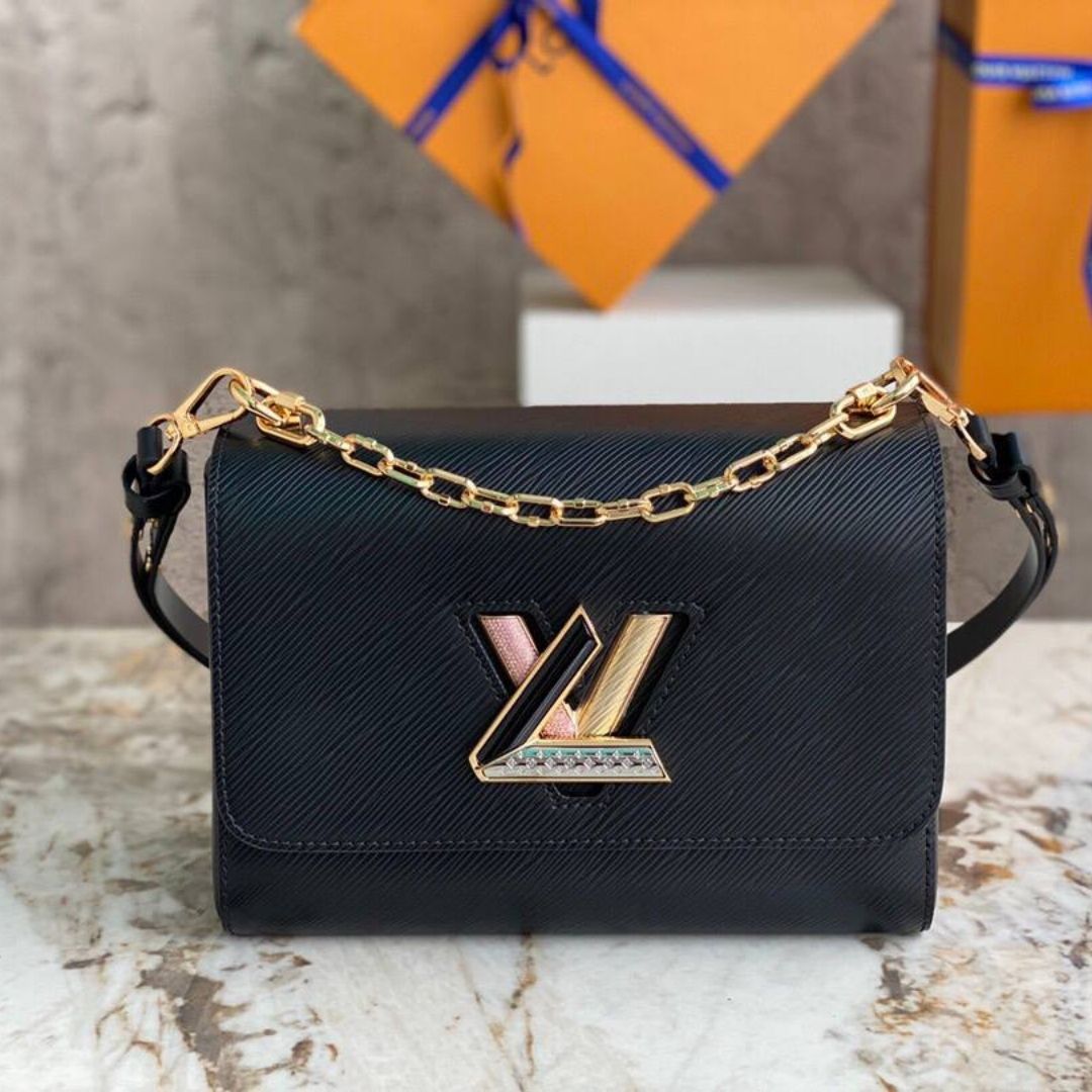 Borsa Louis Vuitton Twist MM in pelle Épi nera 23 cm