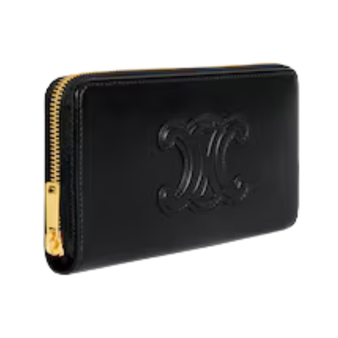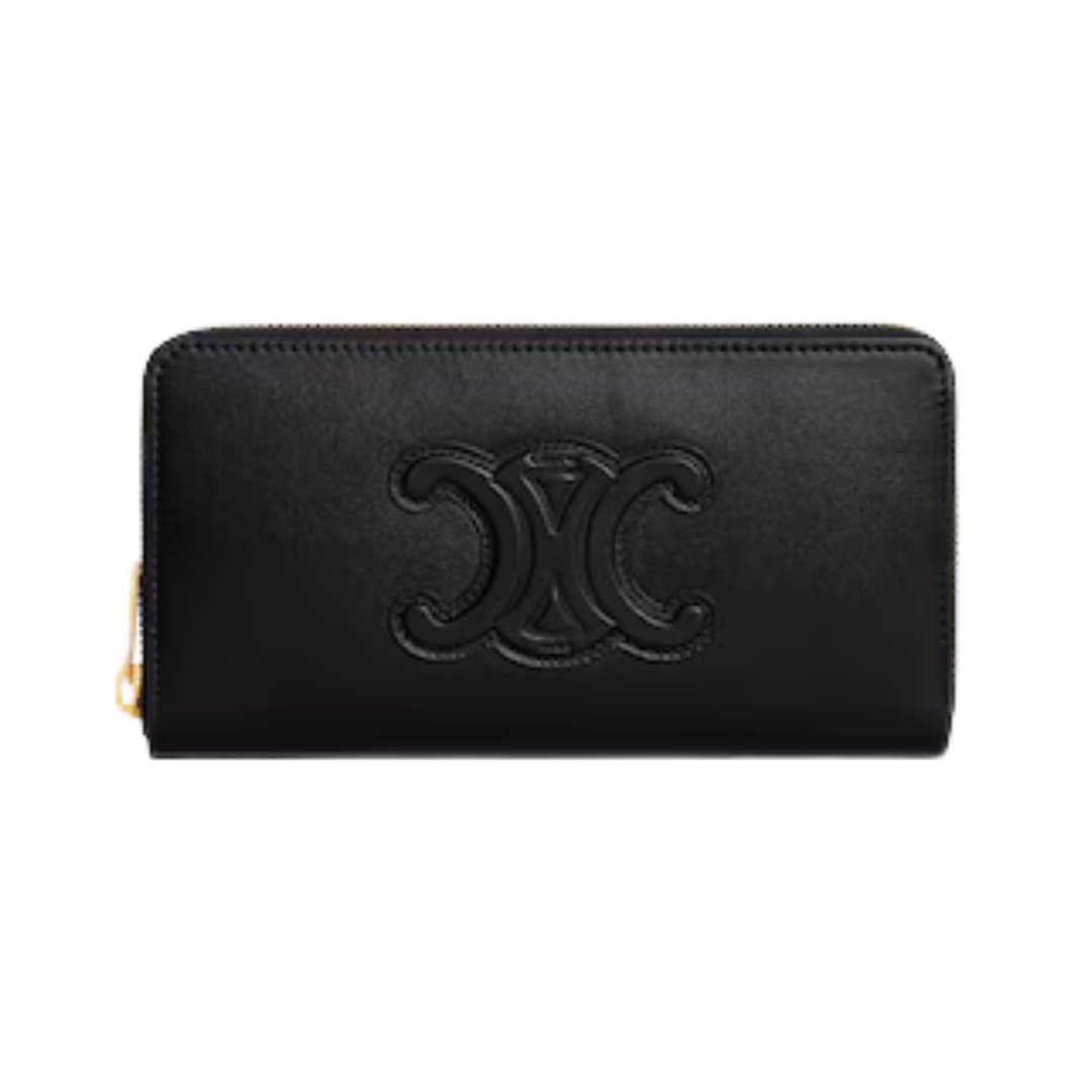 Portafoglio grande con zip Celine Triomphe in pelle nera 19 cm