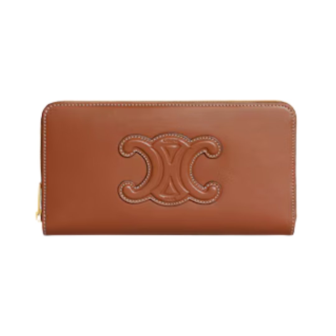 Portafoglio grande Celine Triomphe con zip in pelle cuoio 19 cm