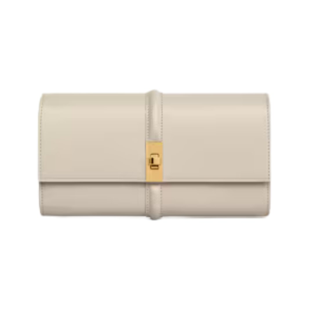 Portafoglio grande Celine in pelle satinata panna 19 cm