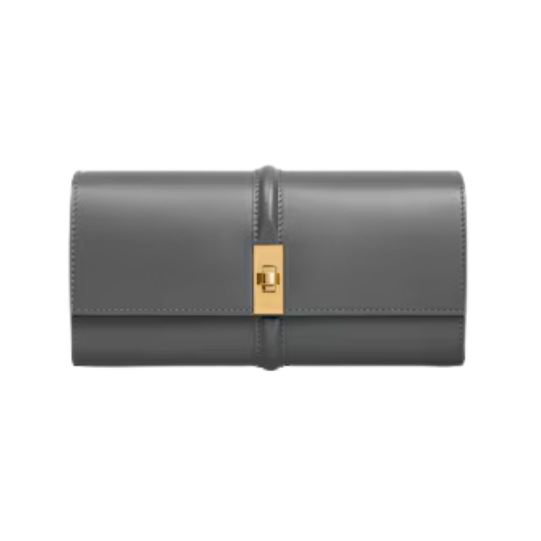 Dimensioni:โ— Larghezza: 19 cmโ— Altezza: 10 cmโ— Profonditร : 2.5 cm Dettagli:โ— Materiale: Pelle lisciaโ— Colore: Taupeโ— Chiusura: Patta con chiusura